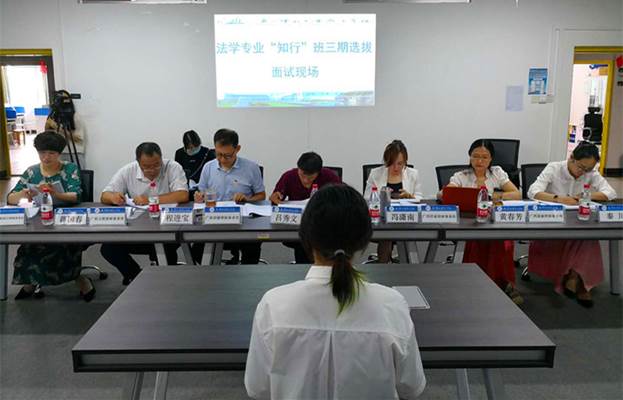 法学专业“知行”班是在进一步促进高校与行业、产业紧密联系、产教融合,更好实现协同育人、协同发展的目标,更好探索和实践高素质应用型法律人才培养模式的基础上,根据广西师范大学漓江学院法学本科专业应用型人才培养方案的要求,经选拔产生的进行法律实务方向培养的法学学生。“知行”班三期选拔面向2018级法学专业全体学生。经过报名与笔试,共有40名同学进入到面试环节。