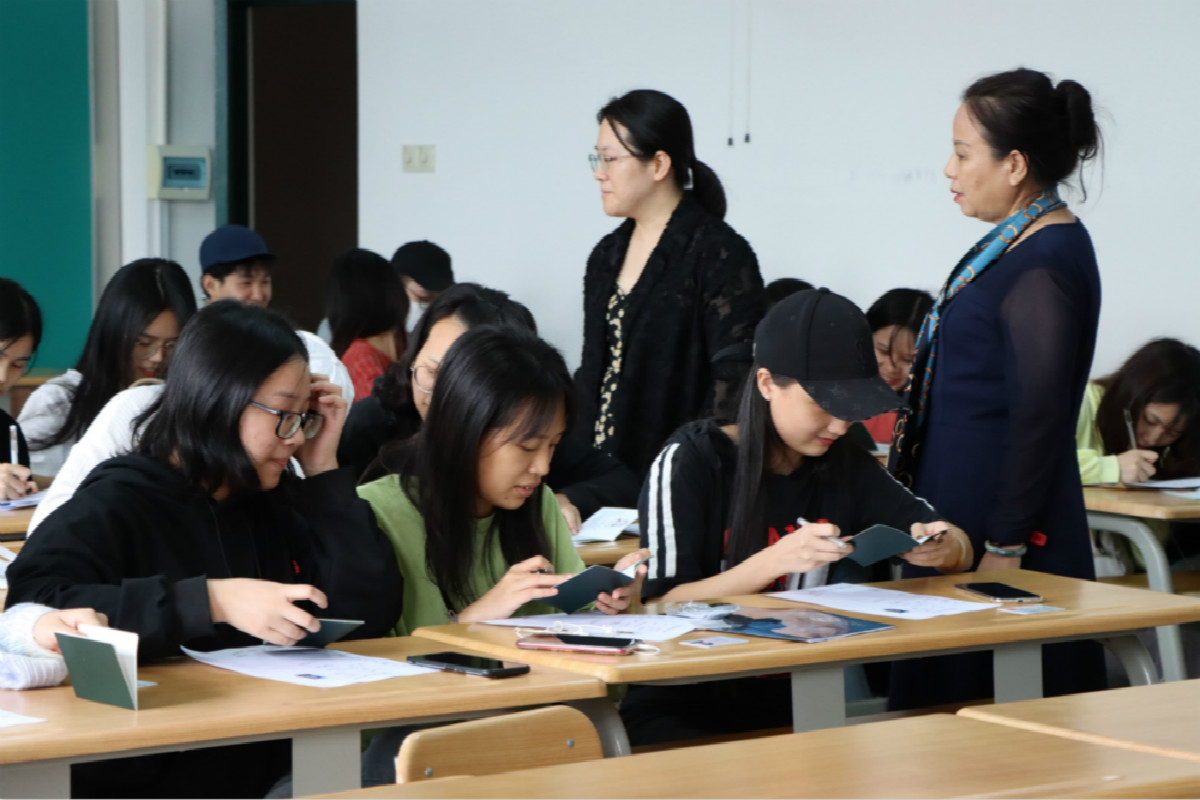 桂林市导游协会余芳会长为学生讲解导游证申领流程