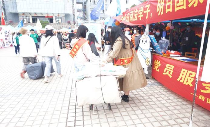 10月9日至10月10日,商法团学各部门成员、青年志愿者、学生党员干部等有条不紊地开展迎新工作,帮助新生尽快完成注册、领取生活物品、入住学生宿舍。各年级志愿者满腔热情,主动向新生简单地介绍了学校的楼层分布帮助他们熟悉环境,并提供相应的生活经验,其目的在于让新生更好融入学校生活。来来回回的接送工作没有使志愿者懈怠于自己的工作,给困顿迷茫的新生交上一张靓丽的名片。他们的细心热情,感染着每位新生。