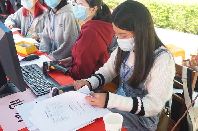 图:学生助理积极为新生办理入学手续