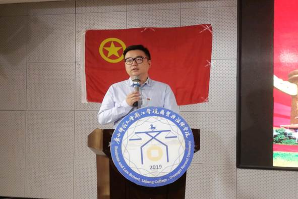商贸与法律学院党总支书记陈俊杰老师为大会致辞