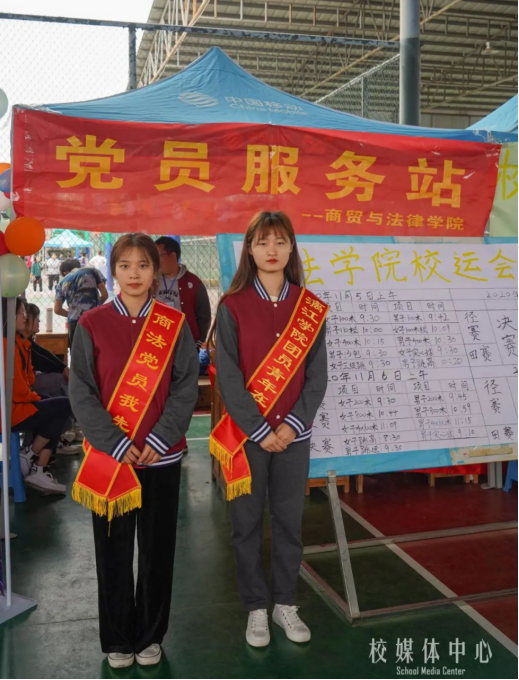 商贸与法律学院学生党支部在校运会期间,于学院大本营设立了“党员一对一负责运动员”服务站,通过轮流值班的方式,为参加校运会的运动员服务,我院预备党员、积极分子积极参加了此次活动。