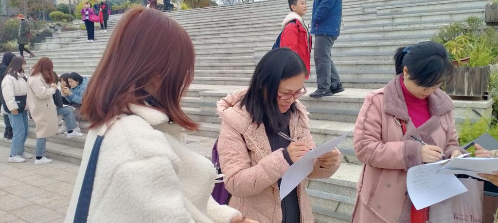 三千漓山水人文度假区位于阳朔兴坪、漓江旅游精华段、毗邻兴坪古镇、背靠九马画山,以“渔樵耕读自在闲”为文化主题,融入渔舟唱晚、躬耕乐道、清歌樵苏、读窗疏影等生活方式的休闲养生度假小镇。同学们边欣赏景区美景,一边在讨论今天如何在现场完成实地的调研。本次课外实践,课程依托各小组实地调研,采用任务驱动法、团队协作法,通过查找资料,针对拟选中的三千漓山水人文度假区资源与特色、发展现状进行调研,根据课本学习重点,配合市场调查预测课程,了解旅游者出行的动机,学习调查研究景区管理存在的问题,以及怎样成为旅游目的地发展的领跑者。根据教学目标与教学重点,使学生掌握游目的地发展的思路、做法和成功经验;旅游目的地发展的薄弱环节以及旅游目的地发展的措施,完成调查报告。