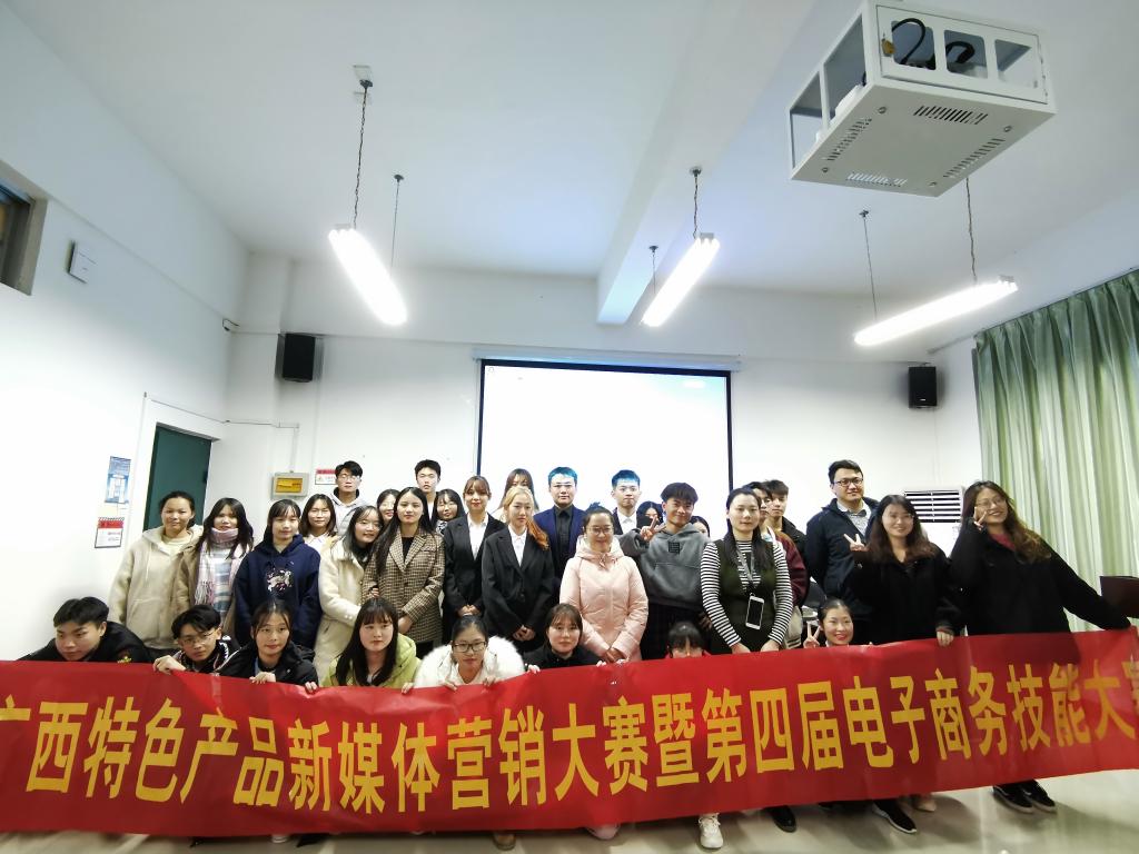 本届电子商务技能大赛以广西特色产品为营销对象,围绕新媒体营销推广为主题,参赛小组任选某一广西特色产品或组织,以文案创作、短视频拍摄两种形式,并至少在3个平台发布,以完成宣传推广,最后通过PPT对营销文案、视频设计思路、营销成果进行总结陈述。经过一个月的准备及推广,现场陈述环节于12月7日晚在3410教室顺利完成。