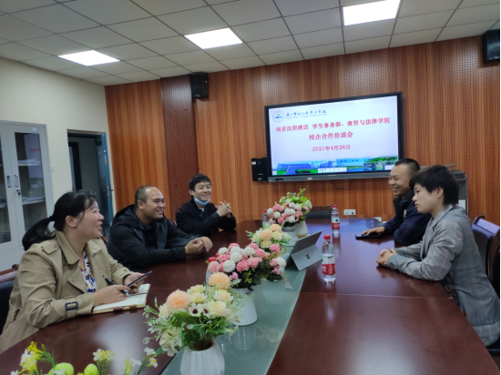 为加强校企合作,拓宽学生就业市场,2021年4月26、27日,商贸与法律学院分别与南京汉府酒店、桂林融创万达酒店群代表开展校企合作洽谈会。我校学生事务部副部长汤靖、商贸与法律学院副院长陈建文、党总支副书记刘雪、旅游酒店教研室主任陈宇贤、钟珺、17旅游酒店辅导员谭海练,南京汉府酒店代表萧巧芳副秘书长、桂林融创万达酒店群人力资源经理胡娜参加了洽谈会。