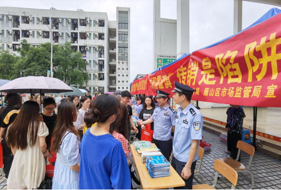 2021年5月15日是第十二个全国打击和防范经济犯罪宣传日。为进一步营造打击和防范经济犯罪的浓厚氛围,增强师生防范意识,5月15日上午,商贸与法律学院、后勤保卫处联合雁山公安分局经侦大队、雁山区市场监督管理局开展“5•15”打击和防范经济犯罪专题宣传活动。