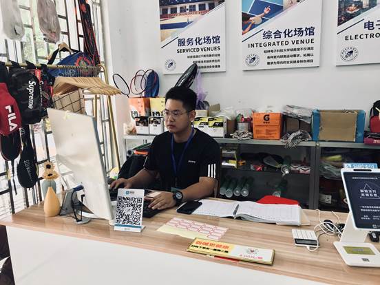 向同学所在的公司负责经营桂电花江校区的球类馆。球类馆现有篮球场、乒乓球台、羽毛球场、健身房、舞蹈房,其收费规则各有不同。球类馆每日营收的1/3来自微信小程序高体发展的收入,2/3来自水、饮料销售。实习指导老师抵达场馆时,大约是上午10点,学生正在场馆上体育课。人很多,一片火热的运动场景。