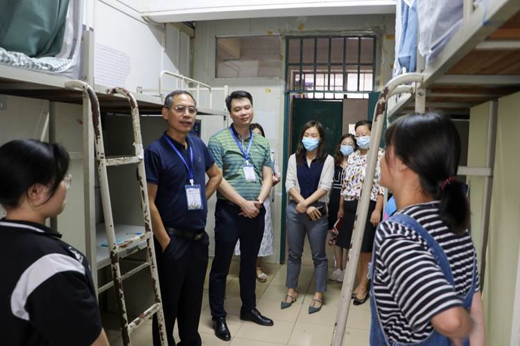 9月14日下午,学校校长杨树喆来到商贸与法律学院新生宿舍慰问看望新生,商贸与法律学院院长林驰、党总支书记陈俊杰、党总支副书记刘雪以及全体新生辅导员随行看望。