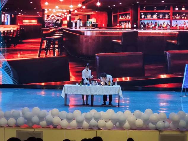 新奇有趣的调酒开场,瞬间夺人眼球,打开了同学们对专业的好奇之门。随后,商贸与法律学院/名淘电商学院教职工一一亮相,大学是个充满梦想和挑战的地方,而陪伴大家度过这美妙的四年的正是我们商贸与法律学院的老师们。
