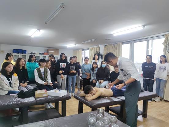 “养生与保健”专题由体育与健康学院的廖维仁老师主讲。廖老师首先为同学们介绍了康复理疗的定义、传统康复治疗以及现今的康复治疗的发展。在了解了一定的理论基础和概况后,廖老师讲授了针灸、拔罐、把脉等系列实践活动,让同学们了解到手法治疗的同时配以一些器械如:站立床、肩关节施转训练器、下肢功率车、减重步态训练装置、踝关节训练器等的辅助治疗,以加快肢体功能的恢复速度,减少疼痛,甚至可以减少残疾程度。