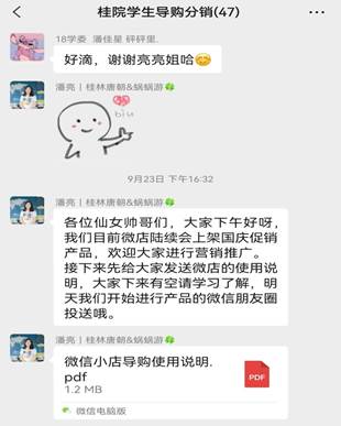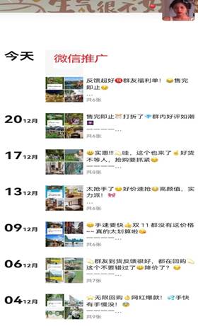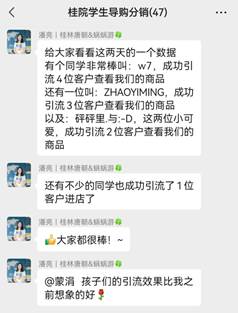 二、学生以个人及团队方式配合企业产品,通过挖掘客户需求,对产品制作相关种草文案,策划、执行相关宣传推广活动。提高销售转化和促进复购。期间,每月1-2次通过蜗蜗游企业导师对主推产品和技巧等进行讲解,将内容更好转化给导购学生;此外,学生参与微信公众号平台旅游产品文案撰写,运营康养文旅栖息地公众号平台。