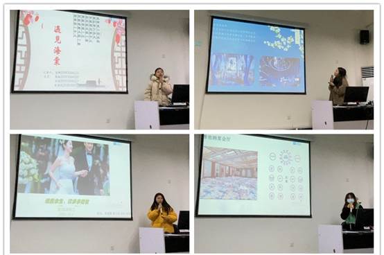 2021年12月29日下午在3106实训室,为加深对《婚庆策划与执行》这门课程基础知识的理解,将理论与实践相结合,2019级会展经济与管理专业开展了主题婚庆策划竞赛。同学们依托婚庆公司、网络平台、实地调研,掌握婚礼策划流程、婚礼化妆、婚礼礼服、婚礼道具等相关内容,通过对婚礼的主题提炼、婚礼配色、酒店信息、场景设计、婚礼流程呈现、资源推荐、婚礼报价等内容,形成主题婚庆创意策划方案。