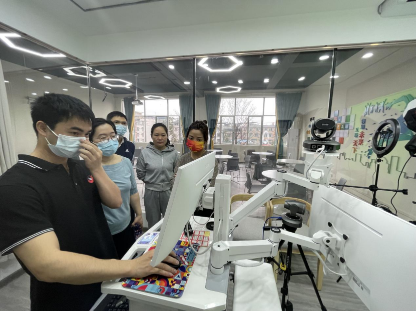 本次培训由直播设备提供方大娱号信息科技公司派出的技术人员主讲。技术负责人首先介绍了实训室直播间的基本设施环境,直播间设备功能与分布结构,及使用设备的注意事项。接着,负责人通过电脑主屏登陆直播管理账户,进入直播后台操作演示直播画面的背景设计、屏幕内画面角度调整、摄像头运转调整、麦克风调试、声卡装备、屏幕录制以及直播后台高级设置与剪辑过程。培训过程中,参训教师认真学习直播软件的操控流程,并对软件操作使用产生的问题进行提问,负责人针对问题进行逐一解答与建议,培训现场气氛活跃。最后,参训教师利用软件进行模拟演练,加深对直播软件的操控流程与使用。