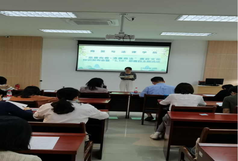 2022年5月18日下午,商贸与法律学院在图书馆C区三楼会议室开展了“崇廉向善·清廉商法”廉政文化标识发布会以及和教工党支部共同召开了以“清风沐商法,廉洁伴我行”为主题的“5.10”思廉日主题党日活动。