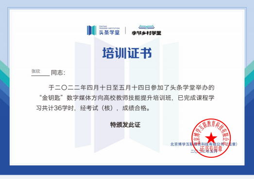 在4月份组织的公益师资培训中,电商与跨境贸易教研室申茜、张欣、周莹、刘美珍、刘雨婷等五位专任教师参加了由北京字节跳动科技有限公司组织的自媒体运营职业技能培训。