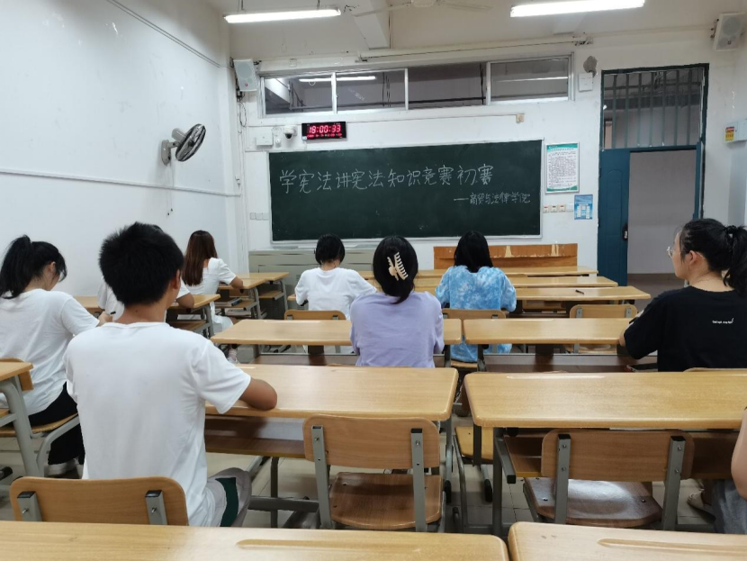 本次初赛以笔试方式进行,主要考察选手对于宪法和相关法治史等方面的知识的掌握、理解与运用能力,参赛选手积极备赛,生动展现了商法学子对于法律知识学习的热情与重视。参赛选手从容作答,严格遵守考场纪律,监考员认真负责,考试有序进行。考生在规定时间内作答完毕后交卷离场。
