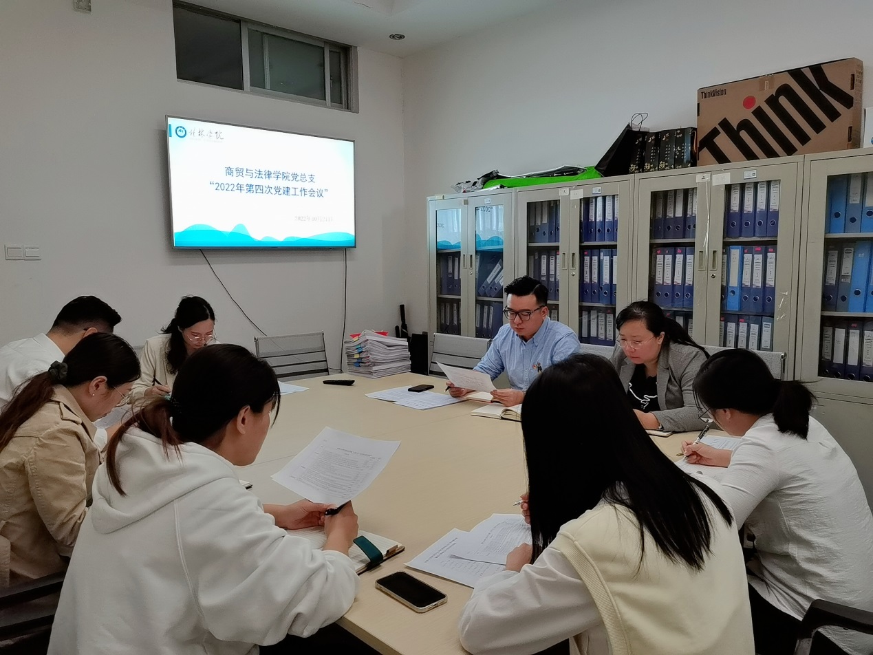 10月21日上午,商贸与法律学院/名淘电商学院在3203会议室召开2022年秋季学期第四次党建工作专题会议,会议由党总支书记陈俊杰主持,全体党总支委员、组织员、师生党支部书记、全体辅导员参加会议。