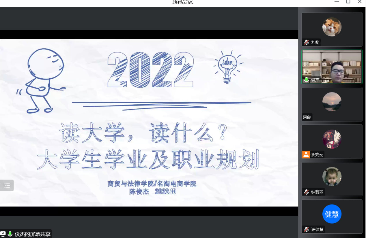 10月9日上午,商贸与法律学院在线上召开新生入学教育系列讲座——《读大学,读什么?——大学生学业及职业规划》。讲座由商贸与法律学院党总支书记陈俊杰老师主讲,商贸与法律学院2022级全体新生参加本次讲座。
