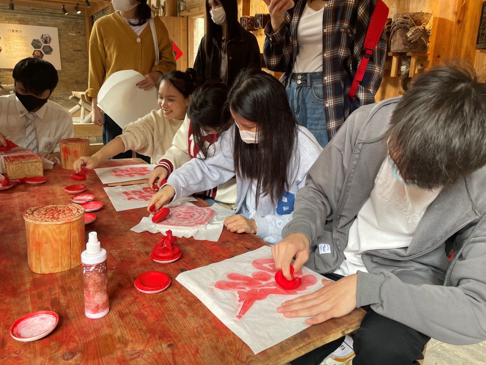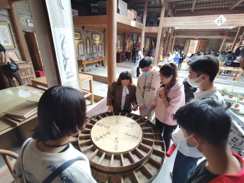 探寻桂北古村历史文化,领略能工巧匠的高超技艺,基地完整的保护和传承着十几项濒临消失的桂北传统民间手工艺。在这里,我院学生党支部的党员同志们实地探索了桂北传统建筑的格局、形式、规制、材料,赏析传统建筑之美;学习了神奇的榫卯结构、拓印工艺、扎染技术等高超的传统手工艺技术,体验传统农耕文化;开展了独特的乡村运动会,考验集体协作的独轮车、板鞋竞技等特色团队活动。