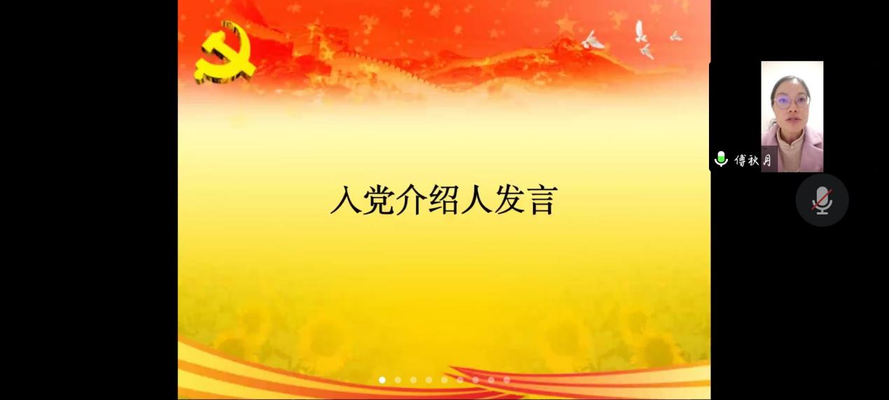 首先,由主持人宣告到会情况并宣布发展党员大会开始,全体起立奏唱《国际歌》。然后由本次的发展对象依次开视频发言向支部大会汇报自己入党的志愿和决心,同时由其民主评议人和入党介绍人宣读对该同志入党的意见,且由到会的支部成员对本次的发展对象是否能入党进行评议,并采用无记名投票的方式进行表决。最后,由主持人公布投票结果,并对本次大会通过表决的10名同志表示祝贺。