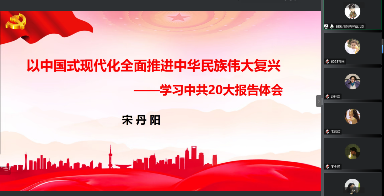 接着,学生支部书记宋丹阳老师从“现代化—近代以来中国人的梦想”“准确理解立足中国国情的中国式现代化内涵”以及“全面建成中国式现代化的机遇和挑战”三个方面为大家讲授了二十大精神内容,进一步提高了党员们的理论水平。