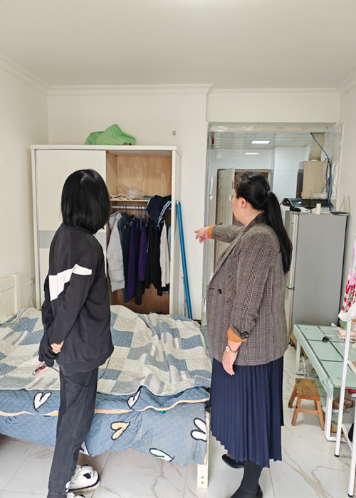 走访过程中,刘雪老师仔细查看学生住所、楼道和用电等安全隐患情况,询问学生在外宿期间的生活状况及近期状态。期间,宋丹阳老师向外宿学生了解其安全问题和未来职业发展规划情况,并针对具体问题给予关怀和指导;同时强调在外宿过程中一定要严格遵守学校的规章制度和法律法规,加强与家人、老师之间沟通交流,高度重视交通、防诈等安全工作,提高自我防范意识。此外,刘雪老师还叮嘱外宿同学在学习或生活上遇到任何难题要及时与辅导员进行沟通,随时向学院寻求帮助,对学生现存的问题提出相应的建议。