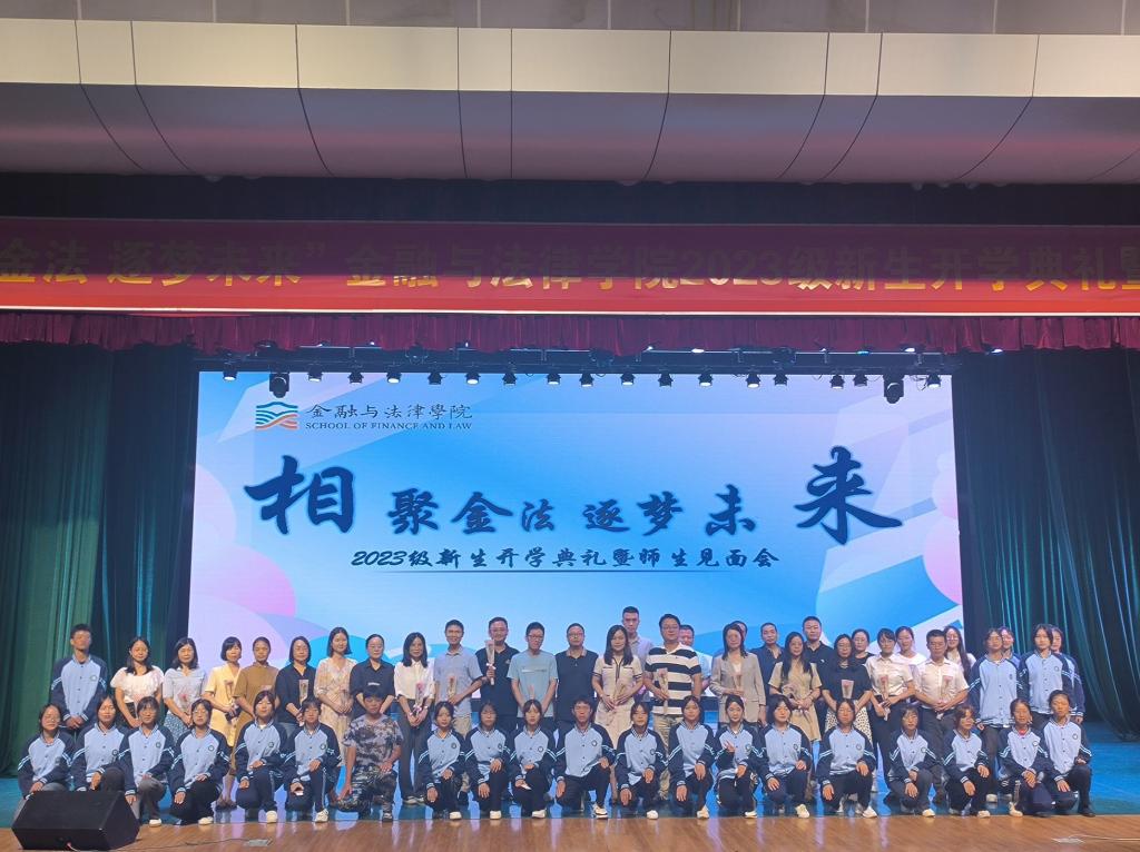 丹桂飘香,金秋送爽。9月20日晚,金融法律学院2023级新生开学典礼暨师生见面会在弘善讲堂隆重举行。460余名来自五湖四海的新生齐聚一堂,满怀憧憬与期盼,翻开人生新篇章。金融与法律学院院长林驰,党总支书记、行政副院长陈俊杰,教学副院长魏春华,党总支副书记姚荣及学院全体教职工出席典礼。