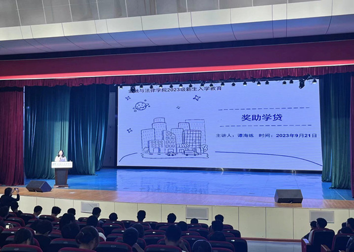 为让新生更好地了解国家和学校资助、奖学金政策,9月21日晚,金融与法律学院在弘善讲堂开展了资助政策宣传主题讲座,我院2023级全体新生参加了本次讲座。讲座由我院辅导员谭海练主讲。