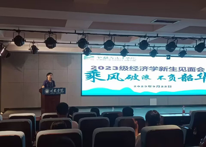 9月22日晚,金融与法律学院2023级经济学专业新生在至善讲坛成功举办了以“乘风破浪,不负韶华”为主题的师生见面会活动。参加此次见面会的人员有经济学专业教研室全体教师、辅导员、班级助理以及2023级经济学专业全体同学。