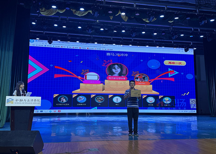 第一模块,通过一个互动小游戏,激起学生的注意力,通过给学生赠送入学礼物,让新生感受到金融与法律学院与金融学类教研室对待学生的热情。