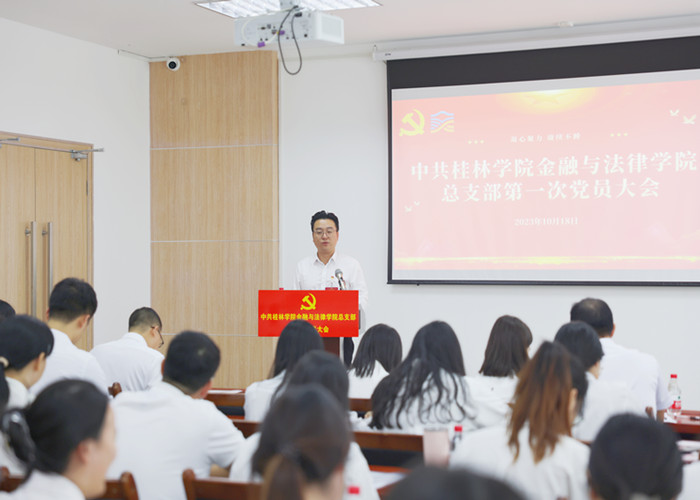 10月18日下午,中共桂林学院金融与法律学院总支部第一次党员大会在图书馆C馆三楼报告厅顺利召开,来自学院三个党支部的40余名师生党员参加了会议。会议由学院党总支副书记姚荣主持。