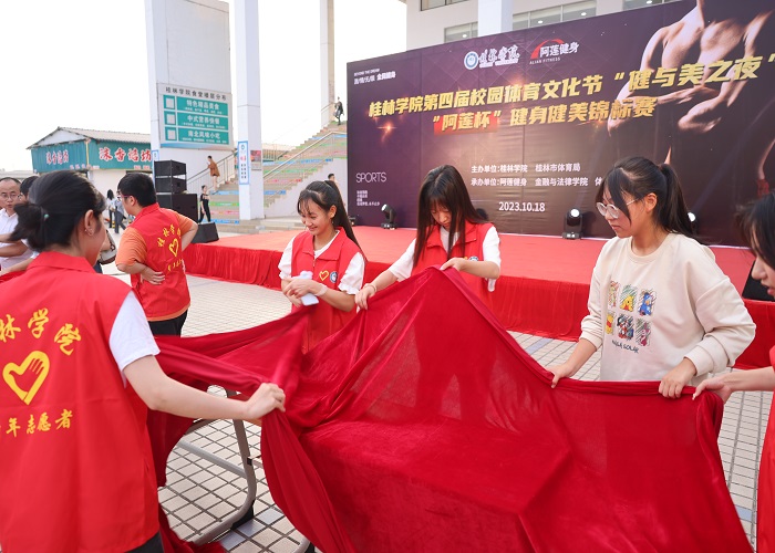 10月18日晚,桂林学院第四届校园体育文化节“健与美之夜”“阿莲杯”健身健美锦标赛于乐善广场举行。金融与法律学院作为承办单位之一,派出志愿者协助本次比赛的相关工作。