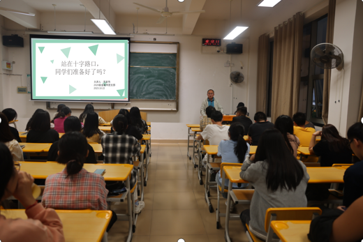 最后,党老师总结升华本次班会主题。他强调,有没有目标决定着你是否能快速进步,目标的高低决定着你行走的远近。同学们应该学会以发展的角度看待专业以及自身发展的未来,明确自己未来的发展方向,在激烈的考研、就业等形势之下寻找自身优势,以勤奋好学、精益求精、踔厉奋发的精神风貌迎接未来!