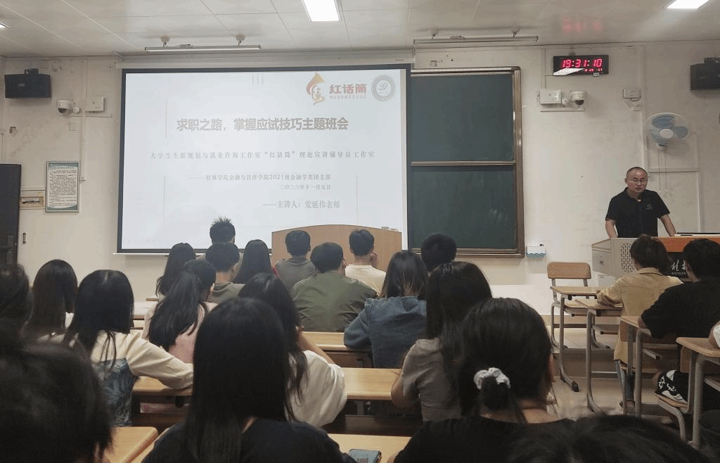 活动伊始,党延伟介绍求职技巧的实用性。接着,辅导员党延伟向同学们讲述简历的写作与投递、笔试技巧、面试技巧、求职必备礼仪等方面的内容。同时采用案例分析的形式与同学们互动。辅导员党延伟通过自己准备好的面试、笔试的案例,更为生动地凸显求职技巧在求职过程中的重要性,并通过点评、分析,促进同学们对相关求职技巧的掌握,并指导同学们针对不同类型的笔试做好相应的笔试技巧和应对策略。