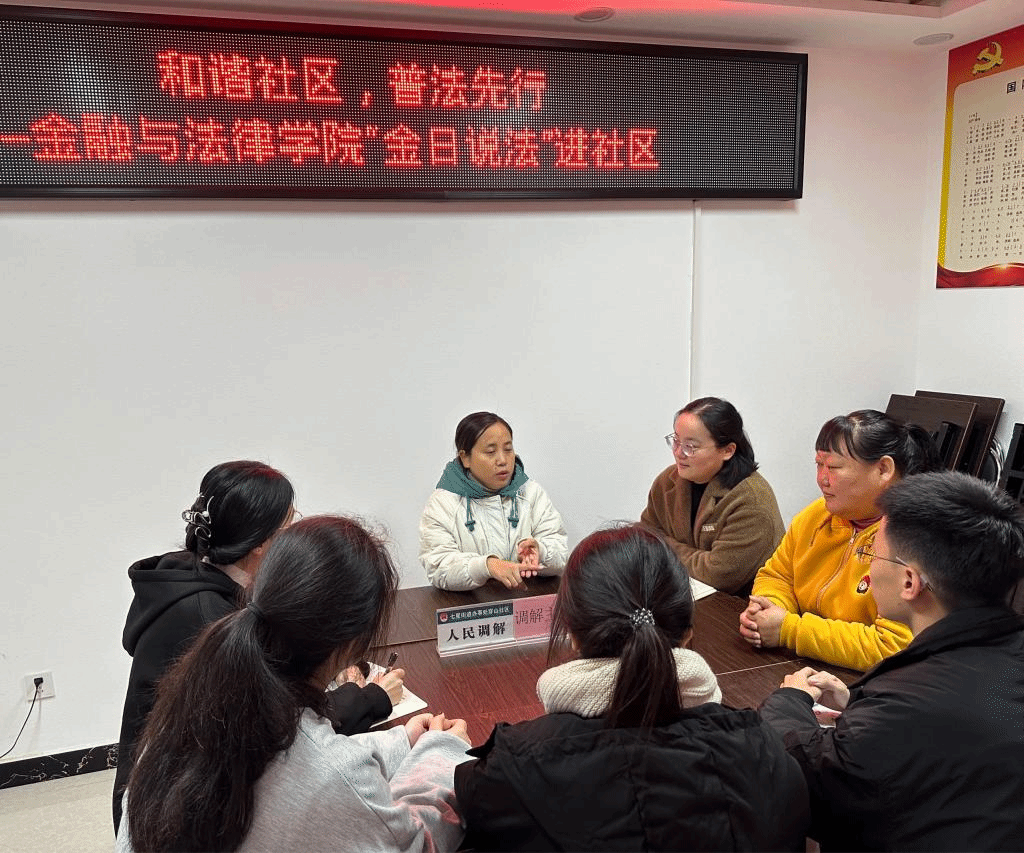 近年来,金融与法律学院与桂林市法律志愿者协会开展各种形式的法律志愿服务,是法学专业深入基层开展法治宣传教育的一项重要举措。并逐步形成以党建为引领,结合《社区法》课程教学实践的“金日说法”品牌活动。通过与社区的合作,旨在提高居民的法律意识和素养,为建设法治社会贡献力量。同时,这也是金融与法律学院发挥专业优势,服务社会的一项重要实践活动。