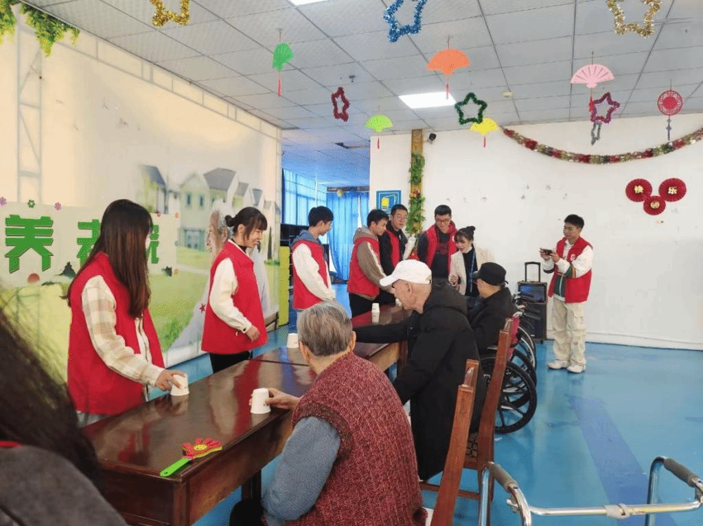 此外,志愿者们还在活动室为爷爷奶奶们表演了丰富多彩的节目,如唱歌、跳舞、互动游戏等,赢得了他们的笑声和掌声。