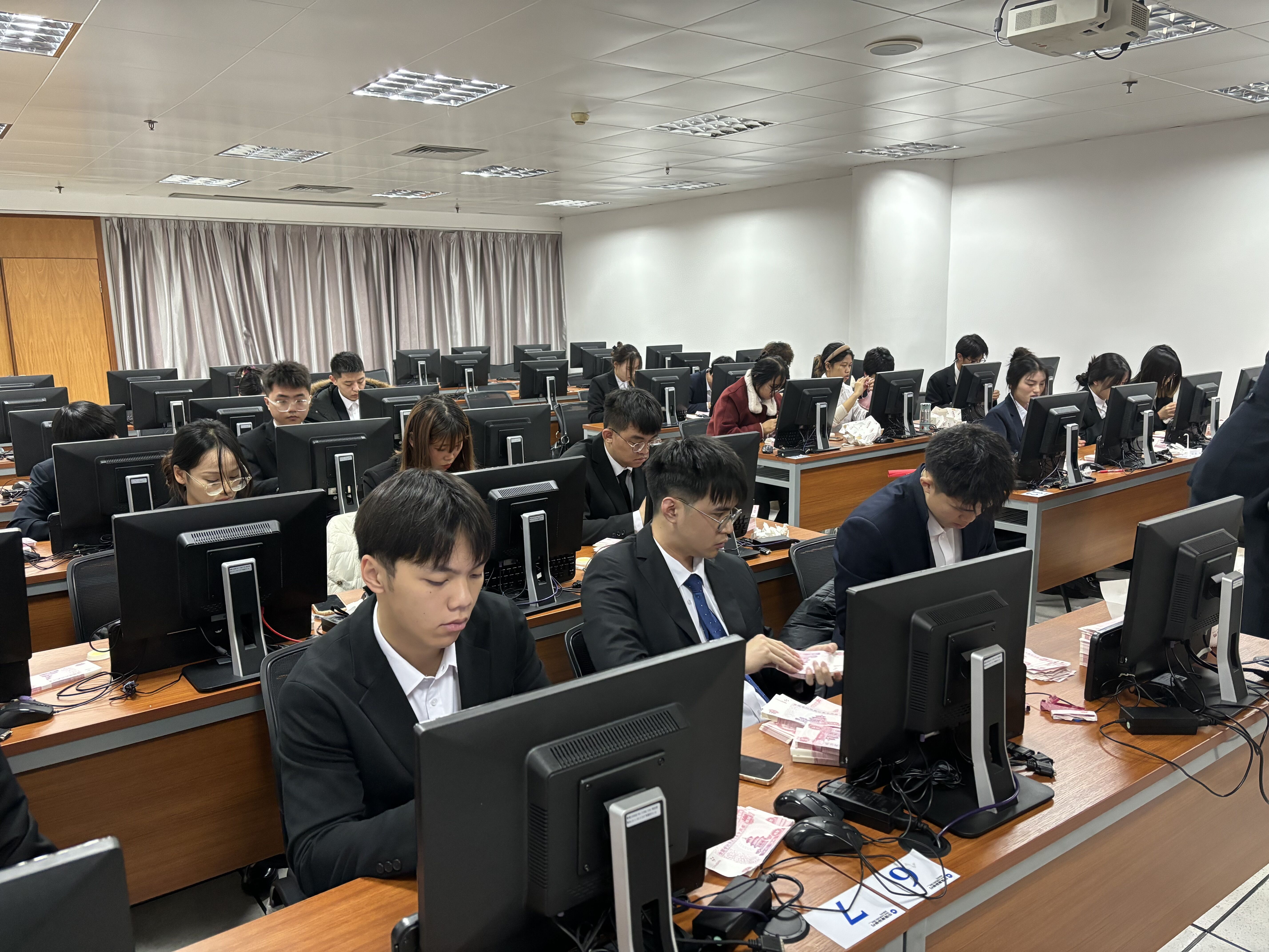 为了提高学生的金融专业技能和实践能力,金融与法律学院于2023年12月14日成功举办了以“建设银行杯”为主题的点钞技能考核活动。此次活动旨在锻炼学生的点钞技巧和精准性,培养他们在金融工作中的细致和敏锐观察力。