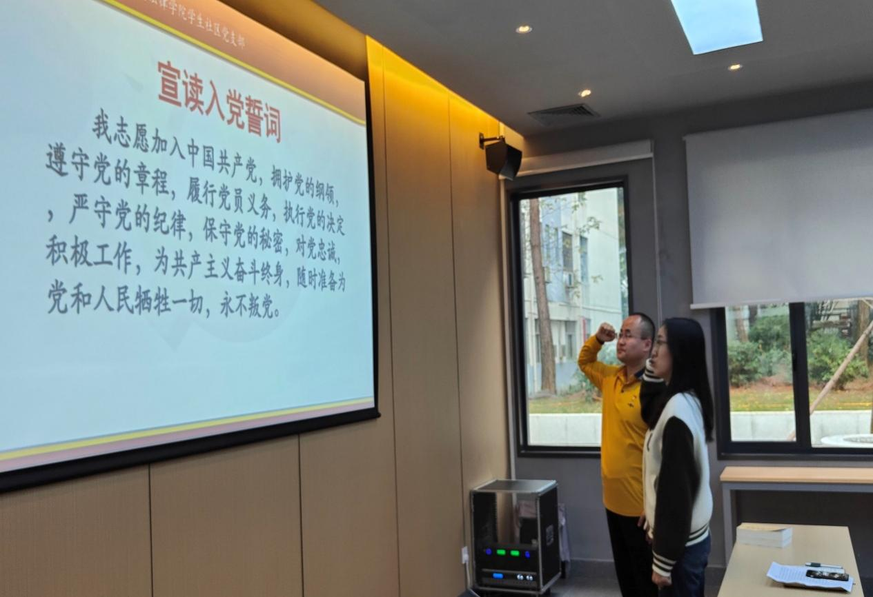12月15日,在桂林学院金融与法律学院杉湖家苑“一站式”学生社区党支部召开预备党员转正大会,学生社区党支部书记党延伟、副书记赵曦、支部全体党员及积极分子代表参加了本次大会。