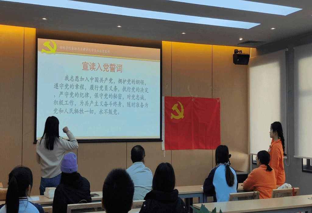 此次活动旨在认真做好发展党员工作,提高党性,强化监督检查和再教育。首先由罗妮同志的入党介绍人介绍预备党员有关情况并表态。接着,就该名预备党员的表现进行了深入的探讨。大家一致认为,她在思想上、行动上均展现出了高度的党性觉悟和优秀的个人素质,完全符合转为正式党员的标准。经过激烈的讨论和慎重的投票,在表决环节,大会以全票通过的方式决定将罗妮预备党员转为正式党员。最后由党支部副书记赵曦老师带领罗妮宣读入党誓词并赠送了党员纪念书籍。在会议结束之际,党支部书记党延伟老师作了总结性发言。他首先对罗妮预备党员的转正表示了热烈的祝贺,并鼓励她在未来的学习和生活中继续保持对党的忠诚和对人民的热爱。同时,他也对其他参会党员表示了感谢,感谢他们在讨论和表决环节中展现出的公正和公平。