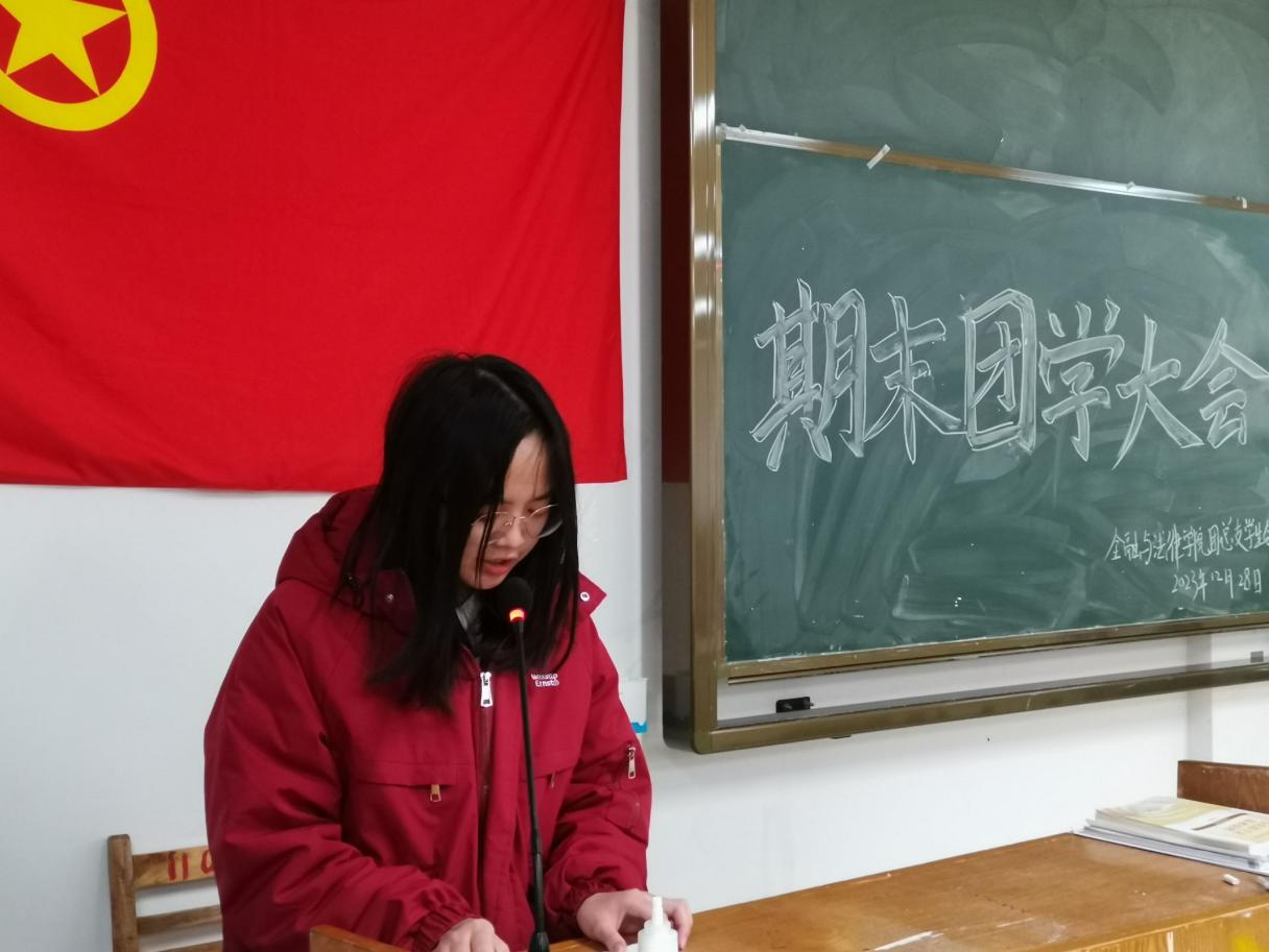 主席团刘思锦同学对本学期团学工作进行总评,指出总体工作的不足,提出各部门要合理利用会议记录本,以此更好服务后面工作。她说,本学期团学取得了比较好的成绩,离不开老师的指导和各位成员的共同合作,希望大家在期末逢考必过,过得开心。