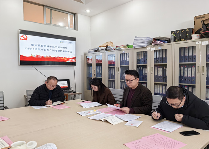 会上,陈俊杰带领与会成员集体学习《习近平总书记在中央经济工作会议上的重要讲话》。陈俊杰指出,要充分认识中央经济工作会议召开的历史背景和重要意义。习近平总书记的重要讲话,是对严峻挑战下做好经济工作的不断升华,既系统总结了2023年经济工作,又为2024年经济工作指明了方向,既是思想指引,又是行动指南,是指导当前和今后一个时期经济工作的纲领性文件。要充分认识到,我国经济社会发展取得的历史性成就,是以习近平同志为核心的党中央的坚强领导、开拓奋进的结果。党总支副书记姚荣从“五个必须”“12个字(稳中求进、以进促稳、先立后破)”、九项重点任务、四个“抓落实”等四个方面,带领中心组成员进行专题学习。
