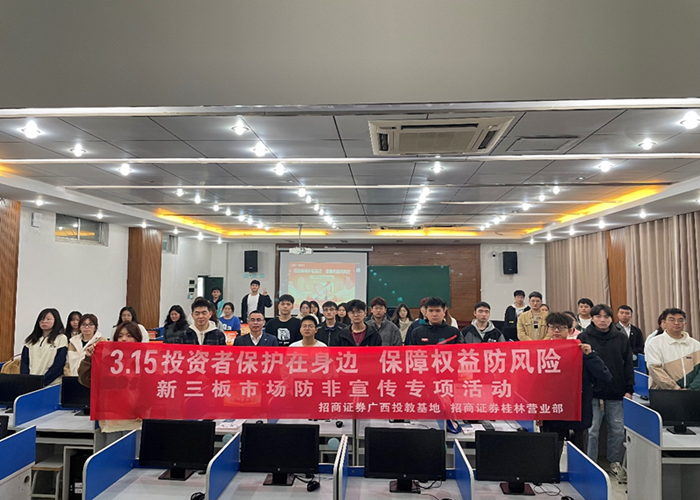 为了提高广大学生对非法证券活动的认识和防范意识,保护投资者的合法权益,3月18日,金融与法律学院协同招商证券桂林营业部联合开展“315投资者保护 防范非法证券”的投资者教育活动。本次活动由招商证券经理李世发以其丰富的行业经验和专业知识,为学院学生带来了一场精彩纷呈的讲说。
