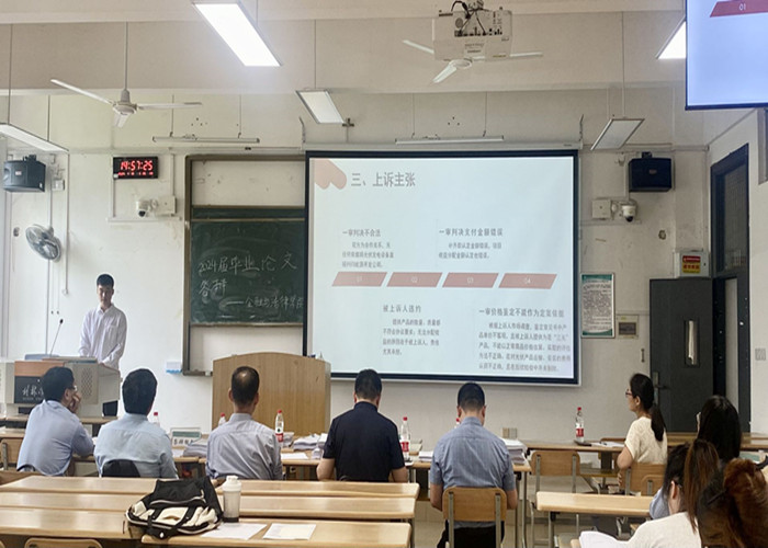 学生按照答辩顺序依次上台,在规定时间内对实习情况、案件具体承办情况、承担的主要工作、办案小结、案件承办心得等进行陈述,各位评委围绕实习案件和实习材料进行提问,同学进行回答。整个答辩过程,充分展示了“知行班”学生的谦逊和进取精神,得到了答辩老师们的充分肯定和高度评价。答辩老师们表示,通过这次实习,学生们不仅提升了自己的法律职业技能,也对法学教育与司法实践的有效对接有了更深入的理解和认识。