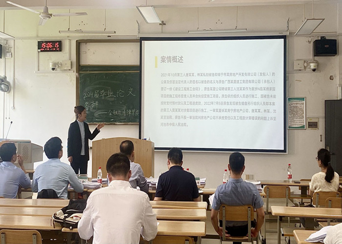 4月19日,金融与法律学院2024届法学“知行班”毕业设计答辩顺利完成。本次答辩既是对毕业实习结果的检验,也是对毕业设计完成过程的检测。参与答辩的评委来自广西君健律师事务所、广西德恩律师事务所、广西祥泰律师事务所、广西通诚律师事务所、北京尚衡(南宁)律师事务所等五所校企合作单位。答辩组组长由广西君健律师事务所程进宝律师担任。法学专业“知行班”共12名学生参加本次答辩。