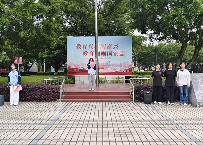 随后,学生代表韦林发言。她表示今天的美好生活来之不易,是先辈们抛头颅、洒热血换来的。作为新时代的中国青年,要始终坚持党的领导,坚定理想信念;要做知识的富有者,坚持刻苦学习,提升自身修养;要追求真理、追求进步,坚持奉献为本,既要做有志的中国青年,也要做有为的中国青年。