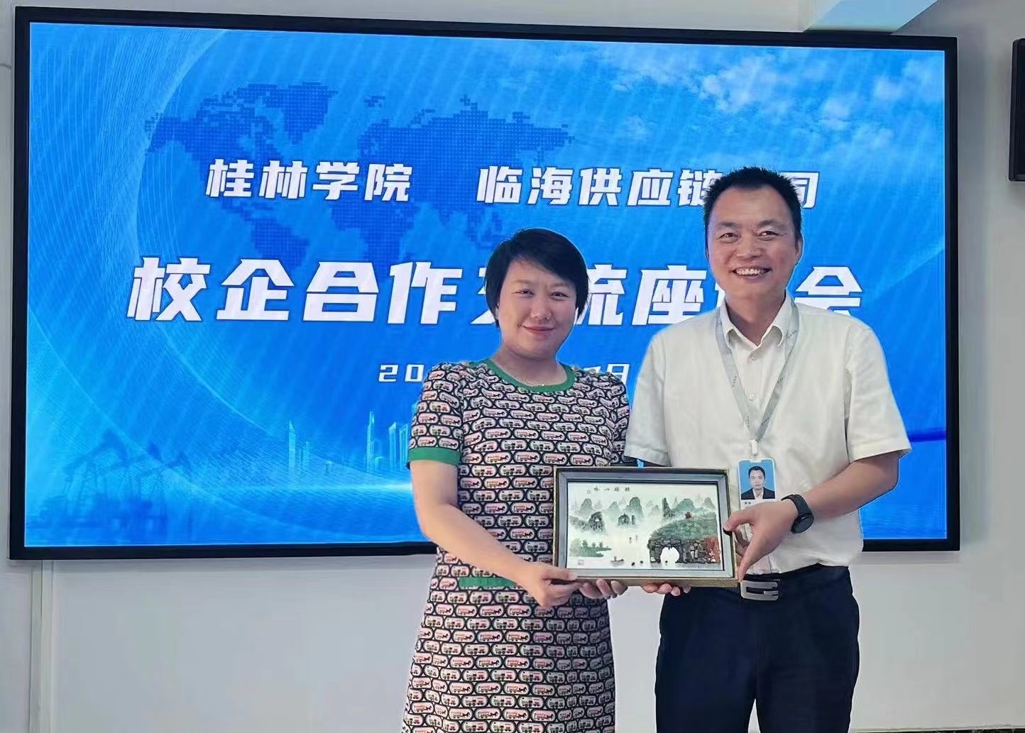 广西自贸区临海供应链有限公司董事长兼总经理苏杰对杨庆庆一行的到来表示热烈欢迎,并介绍了公司的基本情况、发展现状和前景、业务板块、人才需求等方面情况,希望双方能够加强沟通交流,深化校企合作。杨庆庆从学校的历史沿革、办学特色、学生目标定位、学生专业能力等方面介绍学校的发展和取得的成绩,表示此次到访是学校落实教育部关于访企拓岗促就业专项行动的要求,是强化校企衔接,深化校企合作的重要举措。