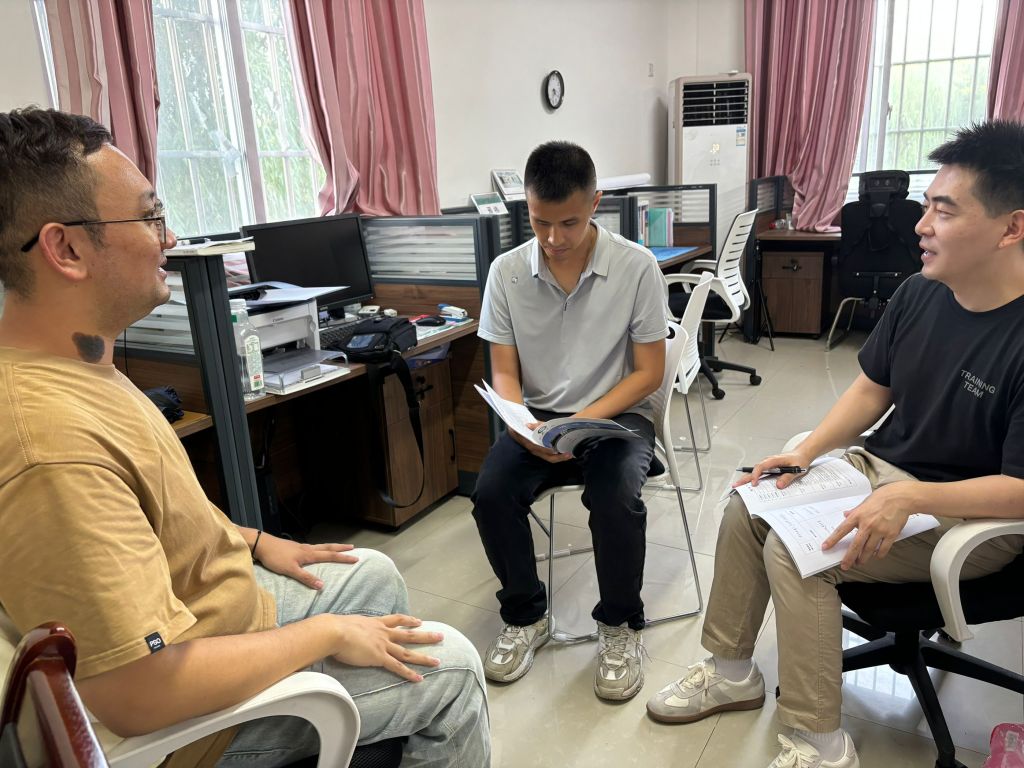 在听课活动结束之后,胡乐天、赖奕均和韦翔老师在3104办公室开展了一次短暂的小组讨论,就刚才的授课表现开展了评价与分析,认为韦翔老师的备课工作、教学设计、上课节奏、教学情态等方面都做得十分到位。