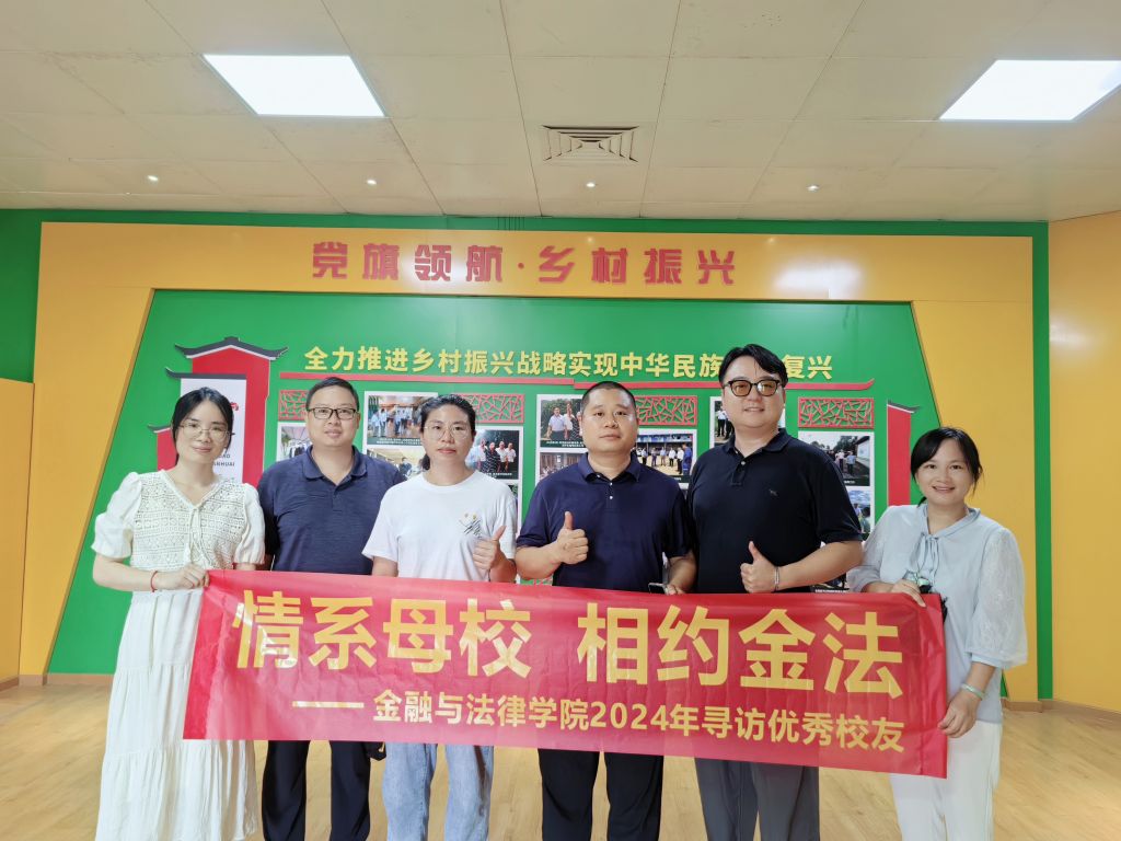 为弘扬优秀校友的榜样力量,增进母校与校友之间的交流合作,7 月 25 日上午,金融与法律学院党总支书记陈俊杰、副书记姚荣一行 4 人前往桂林市平乐县源头镇,探访 2004 级法学专业翟湘乐和 2008 级汉语言文学专业覃谢超两位校友。
