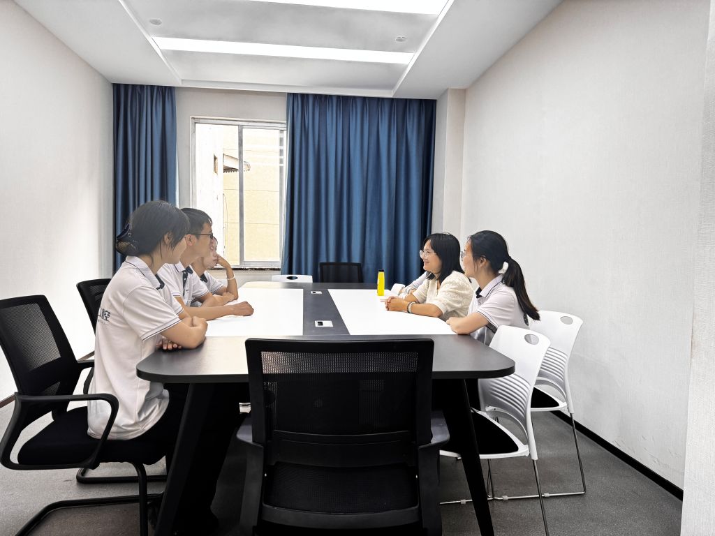 余晓丽老师与公司负责人进行了简短交流,了解公司对学生实习的整体评价及支持情况。同时,也针对学生提出的问题和建议,与公司进行了深入沟通,以期为学生提供更加全面、有效的实习指导和支持。余老师还走访了实习学生的工作岗位,深入了解她们在市场专员岗位上的具体工作内容、实习进展以及遇到的挑战与收获。实习学生表示,自实习以来,她们将课堂知识应用于市场分析、客户沟通等实际工作中,还通过实践不断提升自己的专业素养和综合能力。