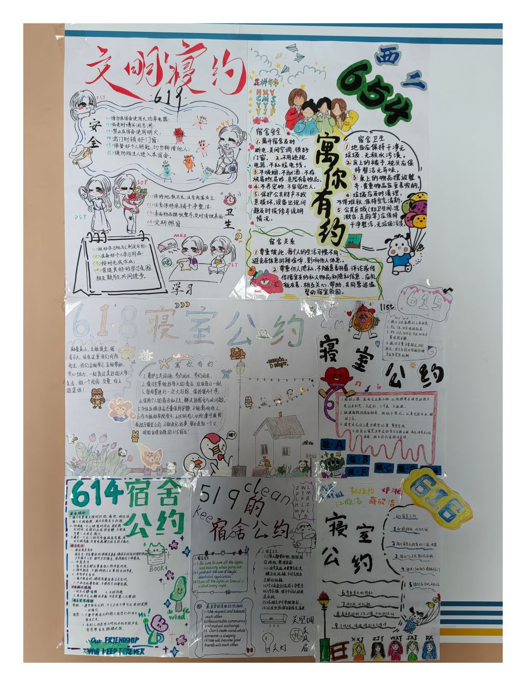 活动自启动以来,学院高度重视,精心策划并制定了详细的活动方案。金融与法律学院2024级全体新生积极响应,以宿舍为单位组队参加,围绕宿舍安全、卫生、学习、人际关系、作息管理等方面,结合学院特色及实际情况,设计了一份份具有创新性、实用性和可操作性的宿舍文明公约。这些公约不仅涵盖了宿舍卫生、作息规律、物品摆放等基本规范,还融入了宿舍成员间的相互尊重、理解与支持等人文关怀元素,充分展现了新生们的智慧与创意。